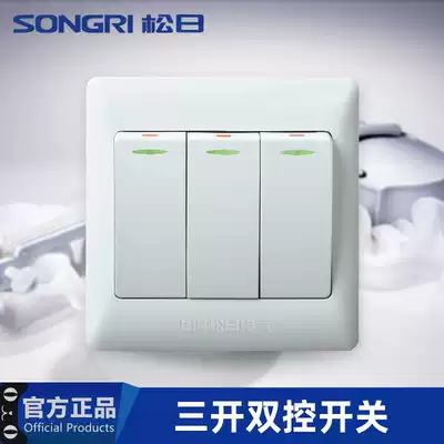 Shanghai Songri switch socket flagship store three-open double-cut household switch Wall power switch panel