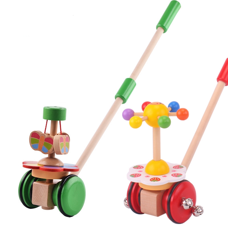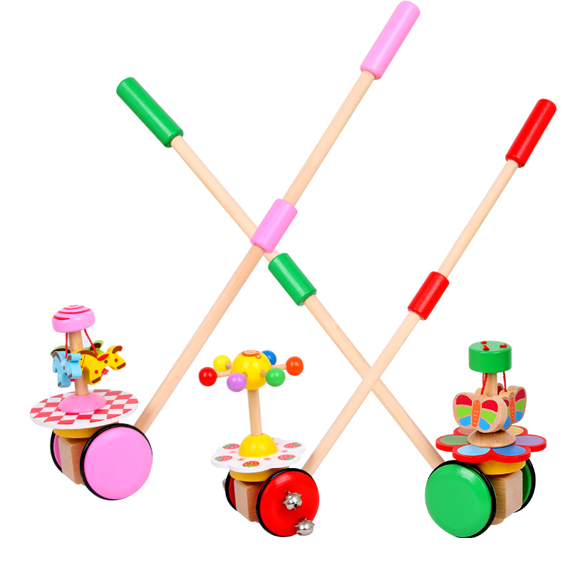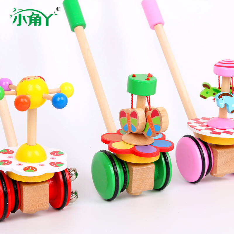 Cartoon toddler toddler animal stroller toy baby toddler 1-3 years old children wooden single rod push music