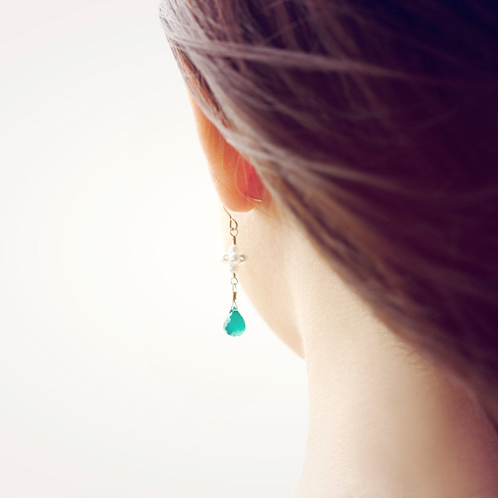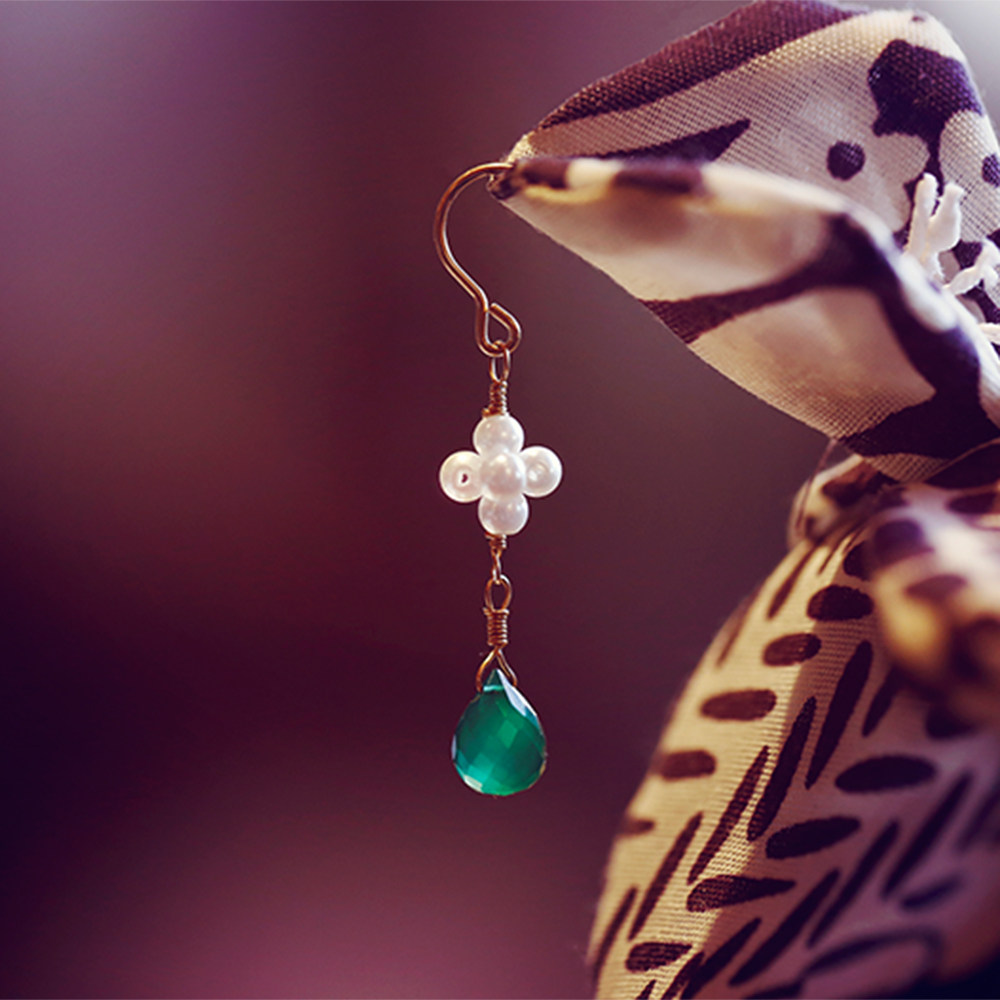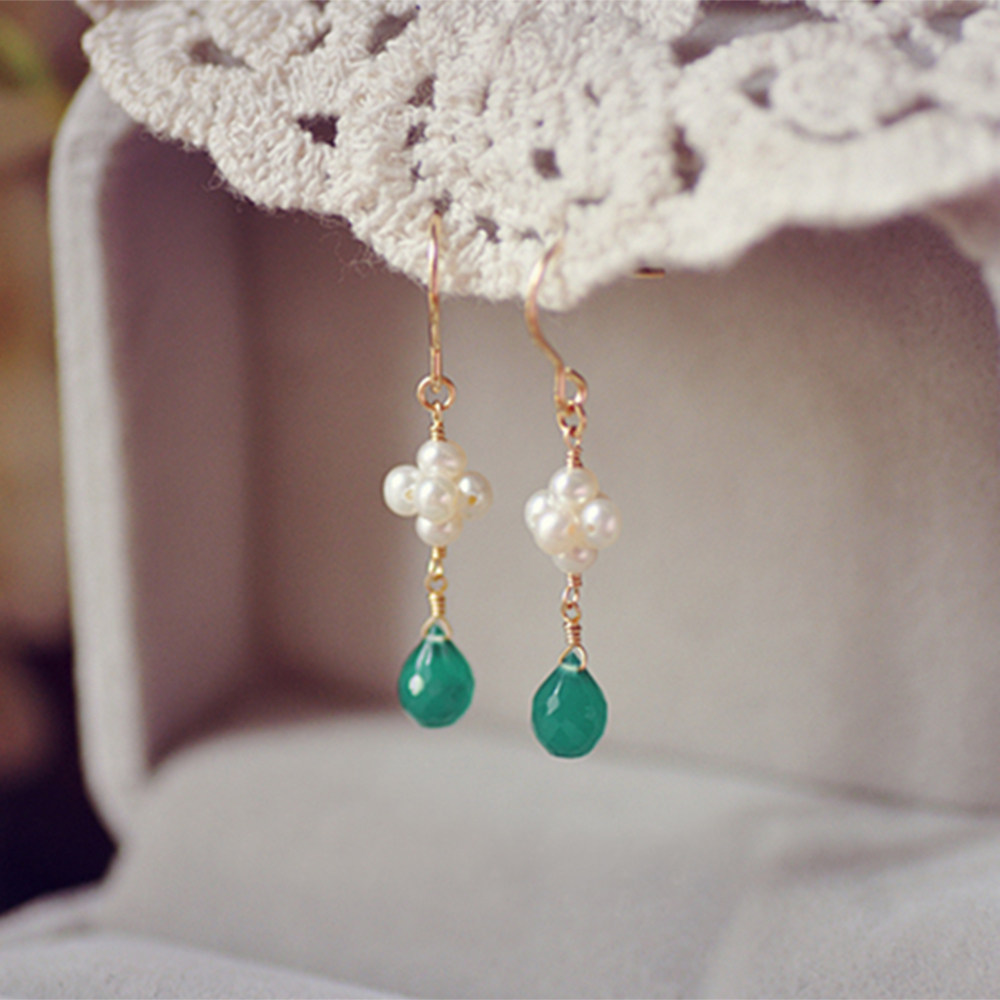 Hand Workshop natural green jade medullary powder crystal freshwater pearl flower ball anti-allergy female earrings earrings-Taobao