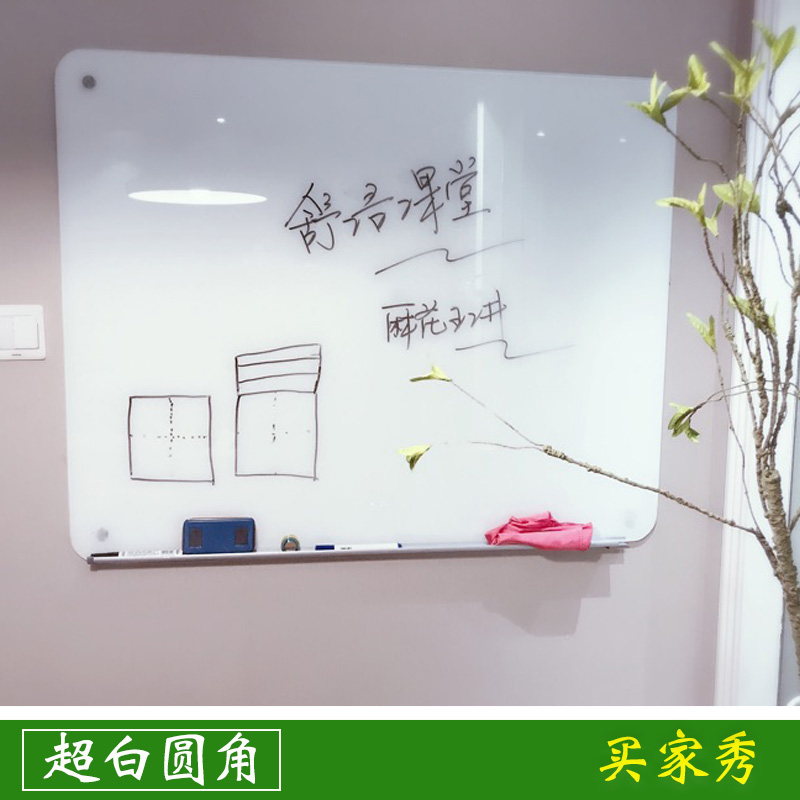 Tempered magnetic glass whiteboard 90 * 120cm message board meeting office household hanging small blackboard wall can be customized