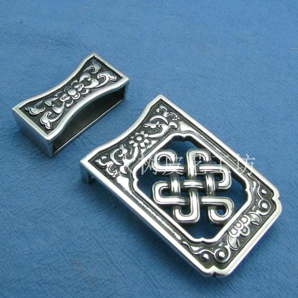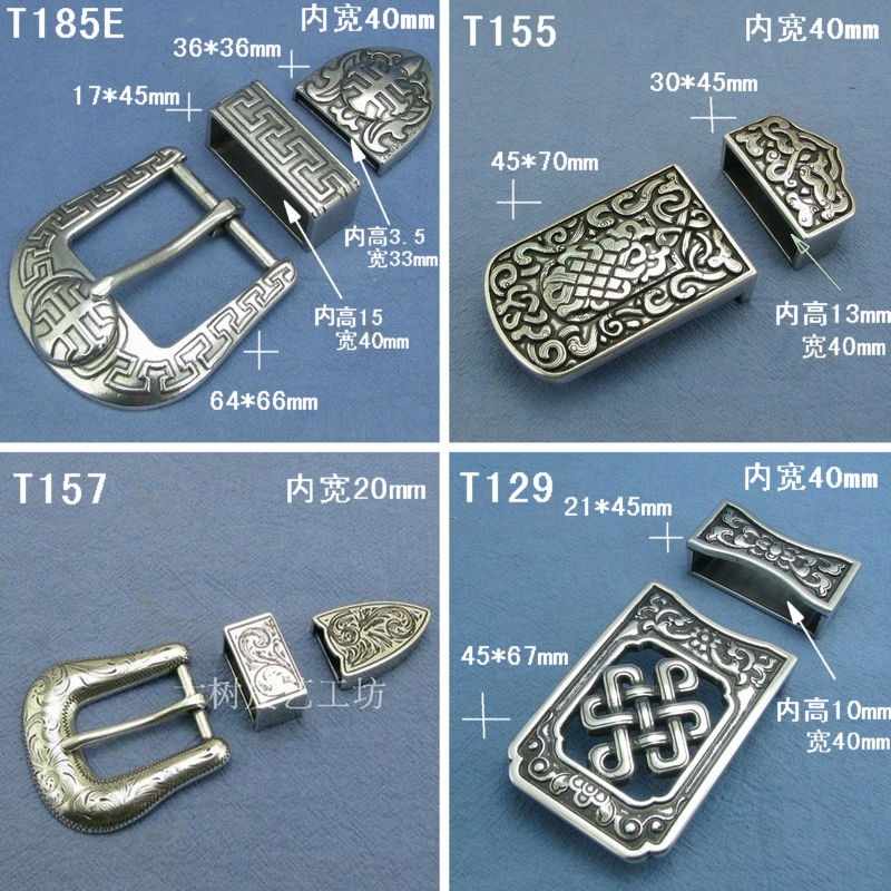 40MM Silver Plated Leather Art Leather Carving Chinese Style Belt Buckles 2-3 Piece Sets (T129)