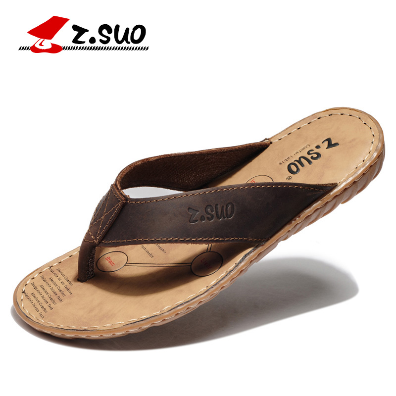 Walking rope leather slippers men's summer outer wear flip-flops leather clip-on men's outdoor sandals tide beach shoes men's sandals