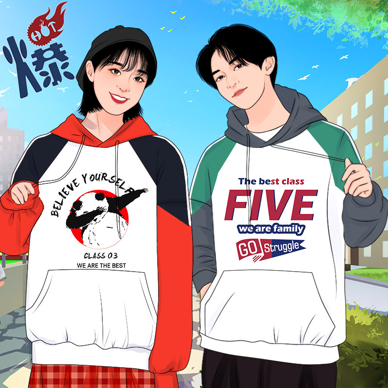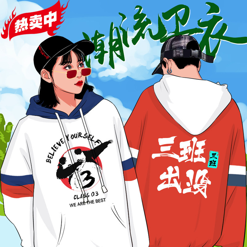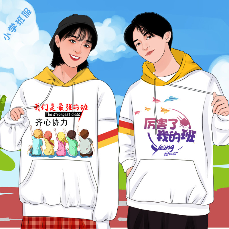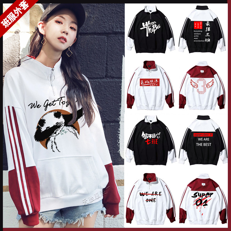 Class suit jacket sweater custom primary school middle school high school students hooded zipper jacket overalls printed logo