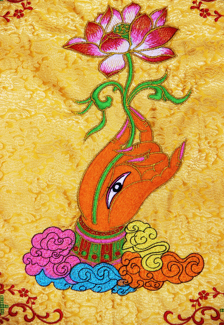 Buddha's hand lotus ring set true fragrance embroidery high-end colorful flags hanging flags Buddha hall embroidery high-quality craftsmanship 39CM*65CM