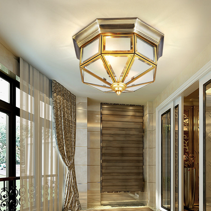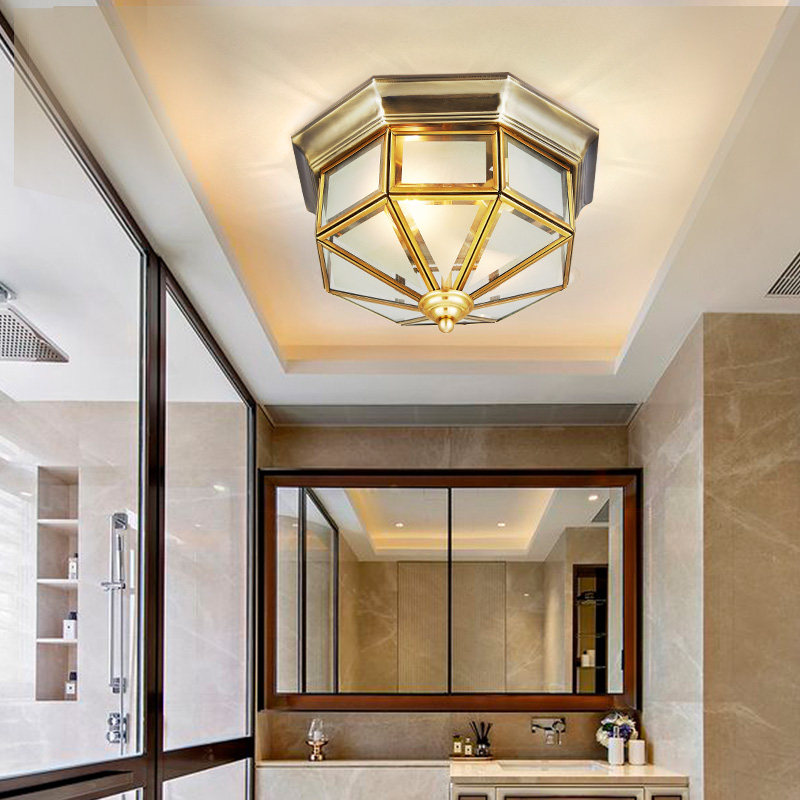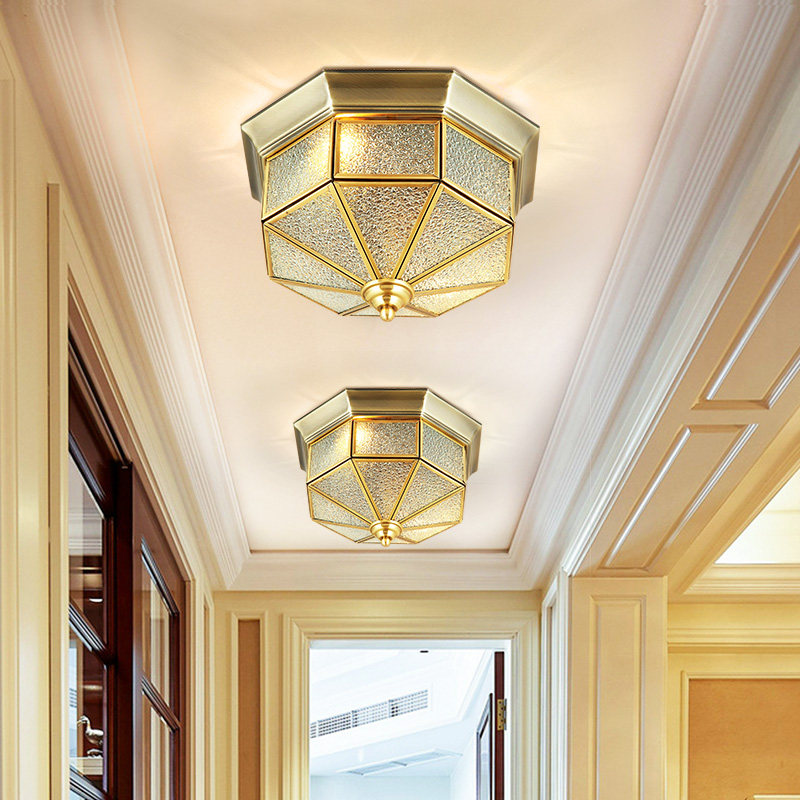 All copper ceiling lamp European-style walkway lamp switched off-European balcony lamp corridor lighting small American retro-entry copper lamp