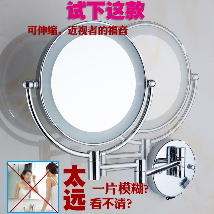 Led make-up room Perforated Bathroom Makeup Mirror Sub with lamp wall-mounted Eight-inch touch dimming Folding Cosmetic Extension