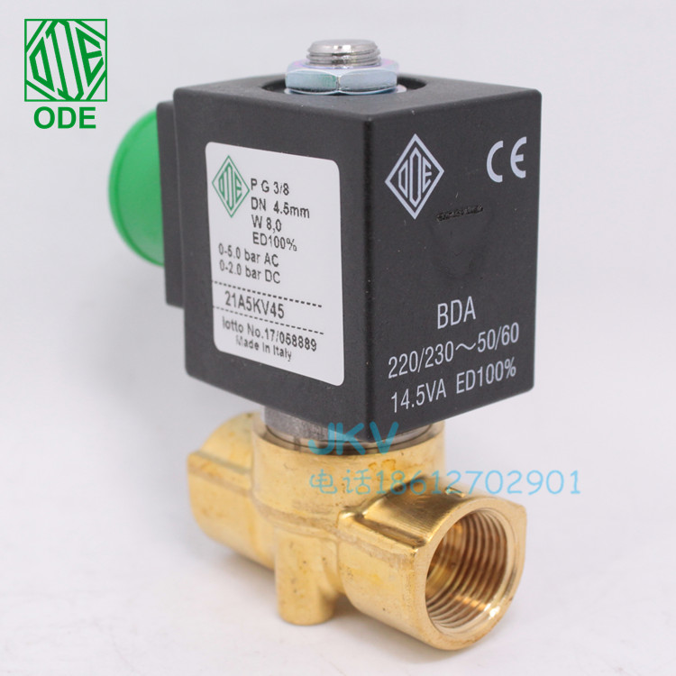 Italy ODE imported brass threaded two-way direct-acting solenoid valve 21A5KV45 3 minutes AC220V