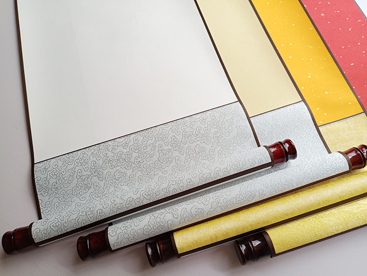 All-in-four-scale six-opening blank hanging shaft painting and calligraphy scroll Xuan paper imitation ancient large red orange yellow sprinkle gold mini drawing shaft