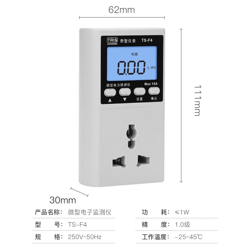Taisheng TS-F4 micro power monitor Household appliances power test metering socket meter Power meter 15A