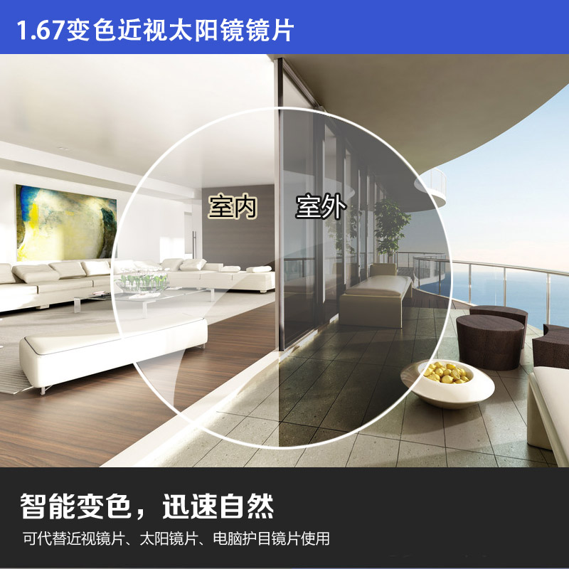 1 67 Anti-Blu-ray discoloration 1 61 Near-lens ultra-tough anti-fall lenses Anti-UV-film Changed Grey lenses