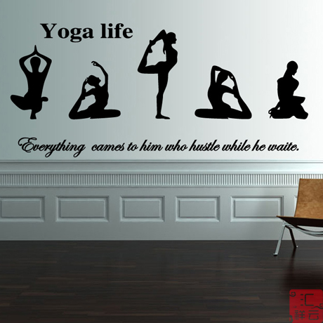 The beauty of yoga Yoga club bodybuilding training room window decoration stickers Fitness center glass door wall stickers