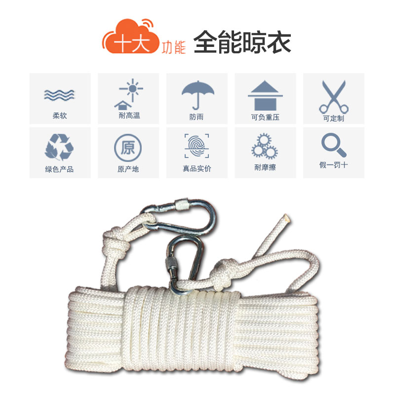 Cold cloth rope outdoor 10 meters long cold cloth rope tied rope Nylon rope non-slip thick cold cloth drying rope