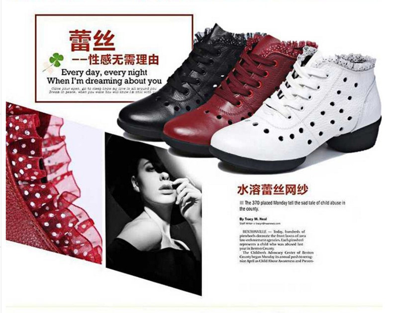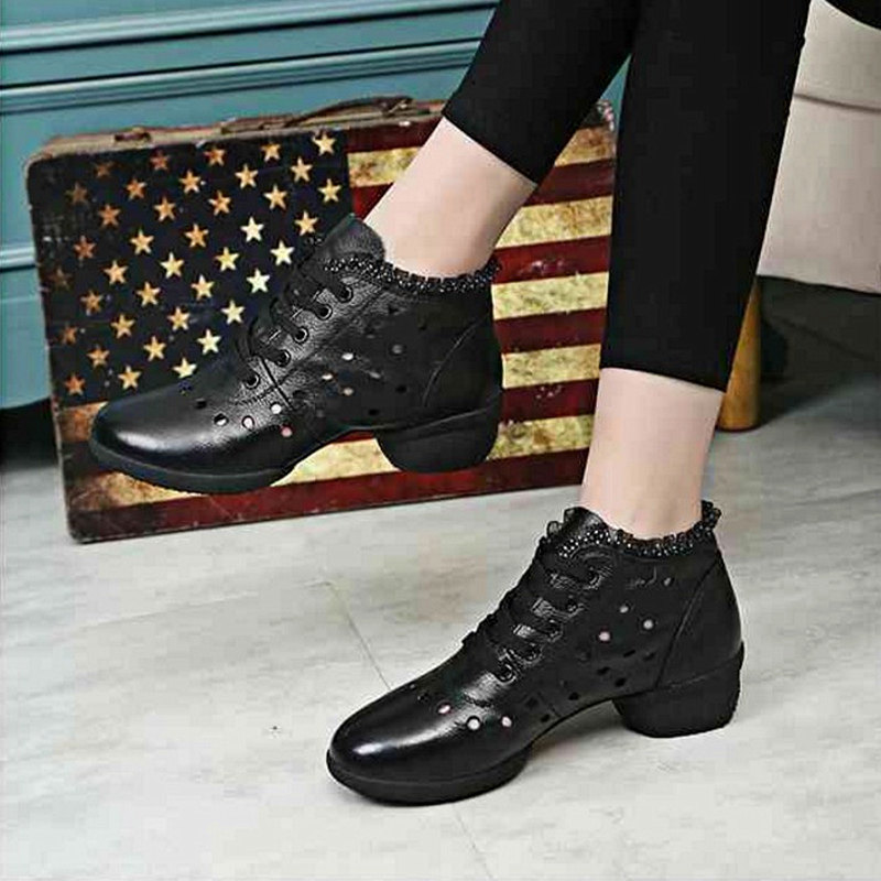 Duveable New Dance Shoes Square Dance Shoes Woman Real Leather Soft Bottom Breathable Heightening Modern Jazz Fitness Dancing Shoes