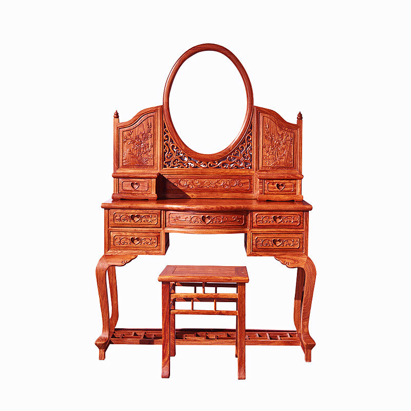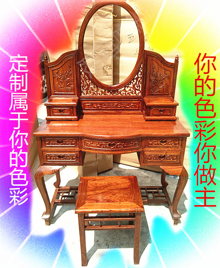 Mahogany African huanghuali curved dressing table European Chinese style solid wood beauty table hedgehog red sandalwood makeup beauty mirror table