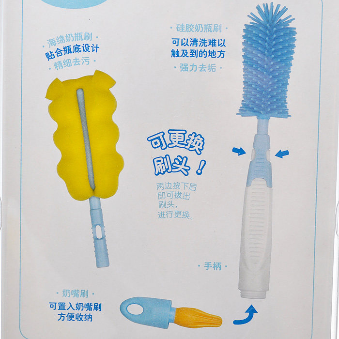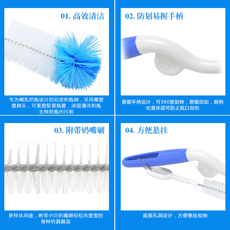 Bei pro wash bottle brush set baby baby sponge bottle nipple brush rotating nylon bottle brush nipple brush