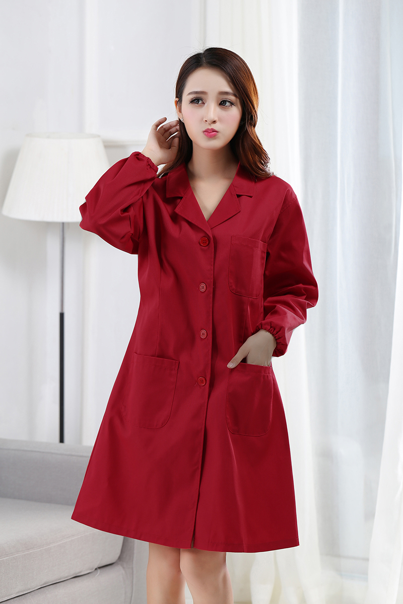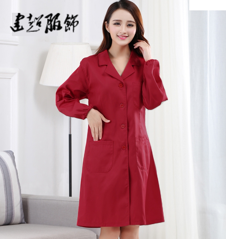 Spring Autumn Wine Red Big Coat Work Clothes Anti Dust Clothing Red Coat Lao Pau Pau Pai Beauty Hairdressing Experiment Health Care Women Clothing