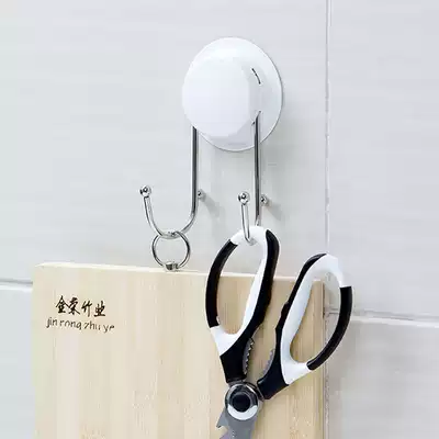 Jiabao suction cup hook Kitchen bathroom stainless steel large hook Creative incognito adhesive hook Single hook Double hook Long-lasting load-bearing