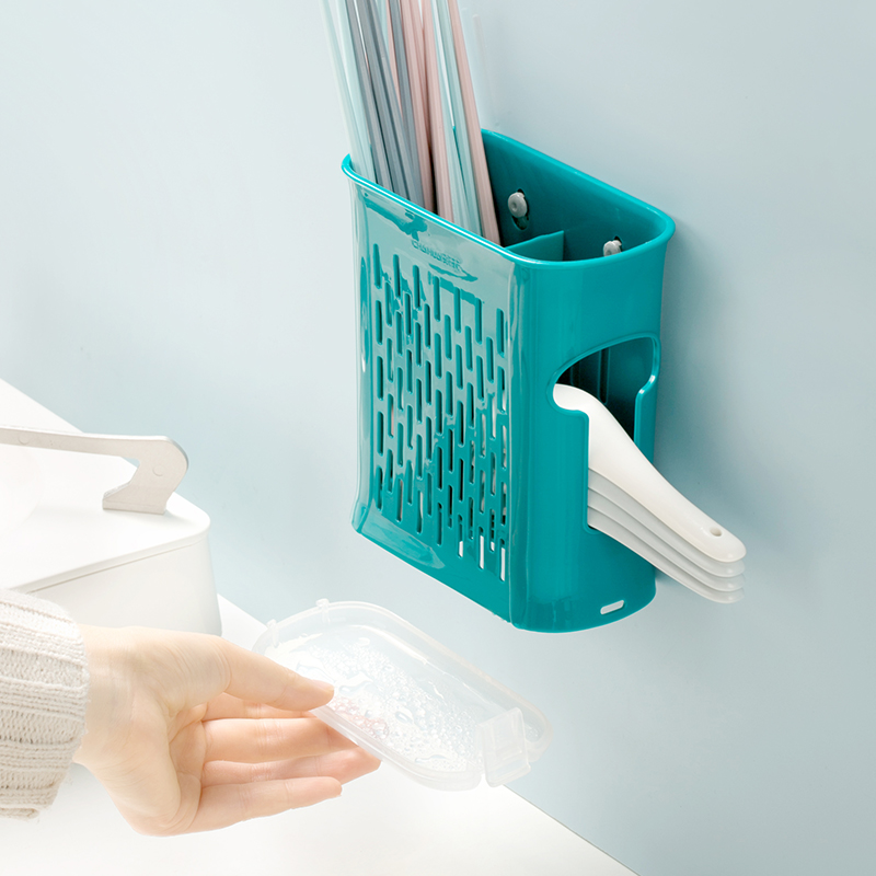 Tea Flower Plastic Chopstick Cage Home Wall-mounted Chopstick Rack Kitchen Table Leachate Chopstick Cylinder Basket Spoon Containing box