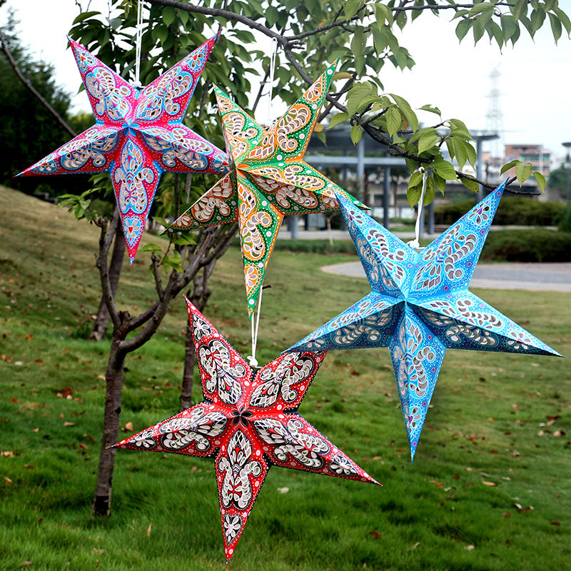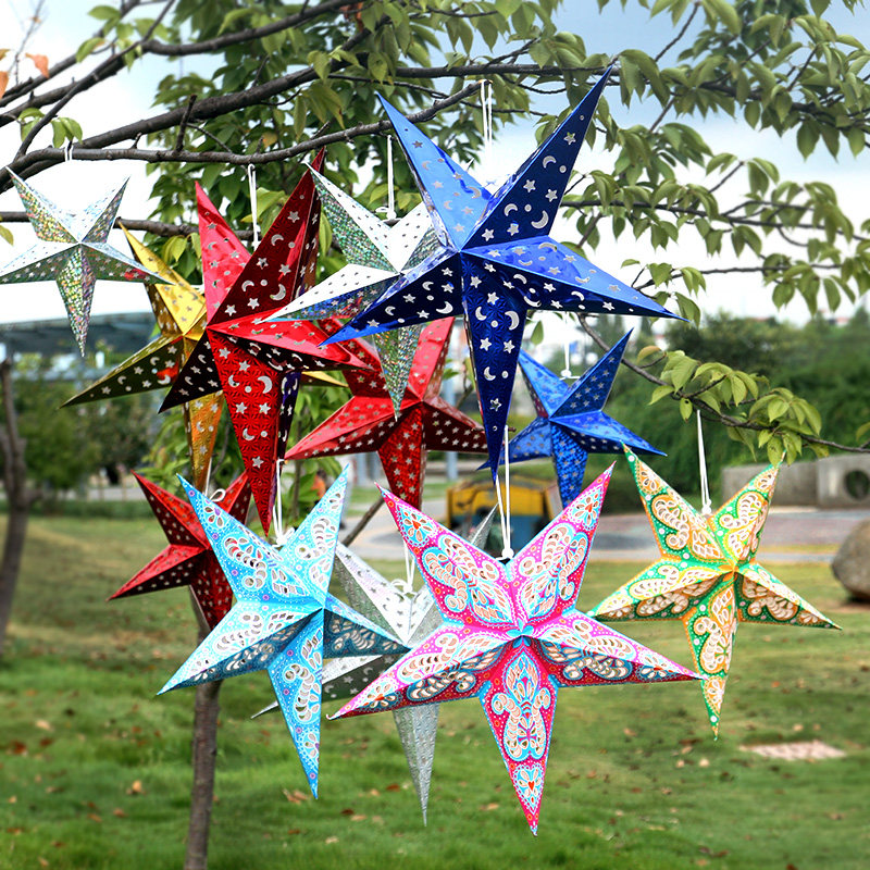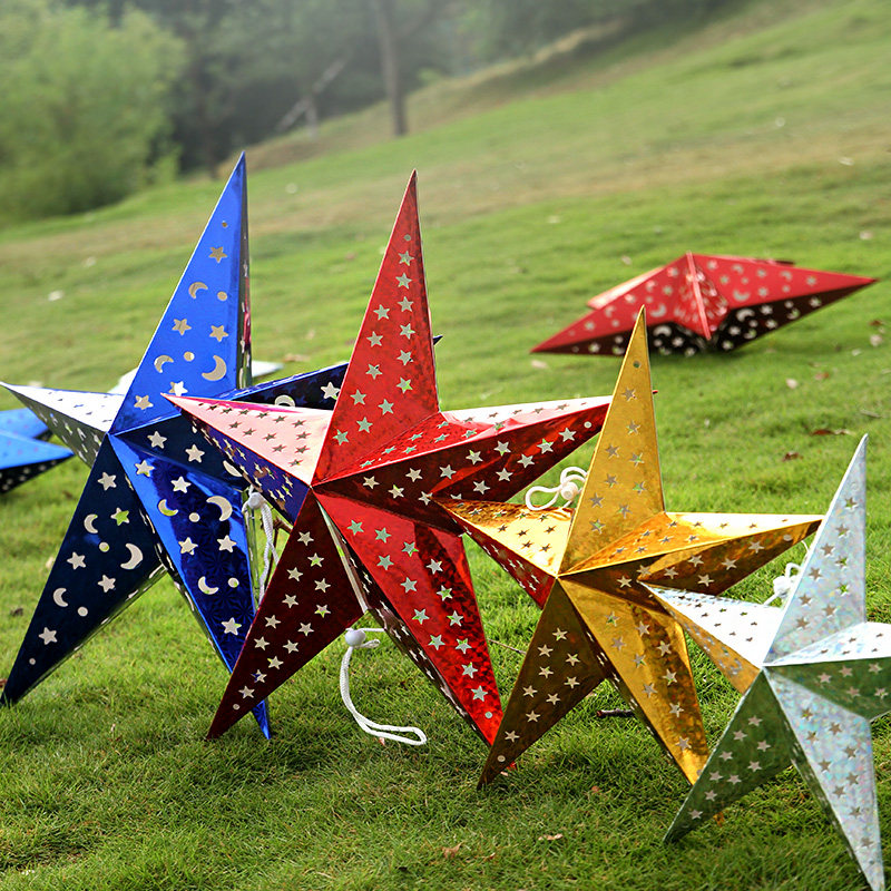 61 Children's Day Kindergarten Decorative Suspended Ceiling Decorative Stereo Laser Five-pointed Star Lampshade Bar Star Colorful