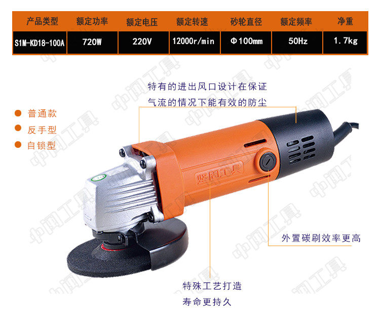 Strong brand 720W plastic shell old Qiyang KD18-100 plastic shell angle grinder self-locking angle grinder