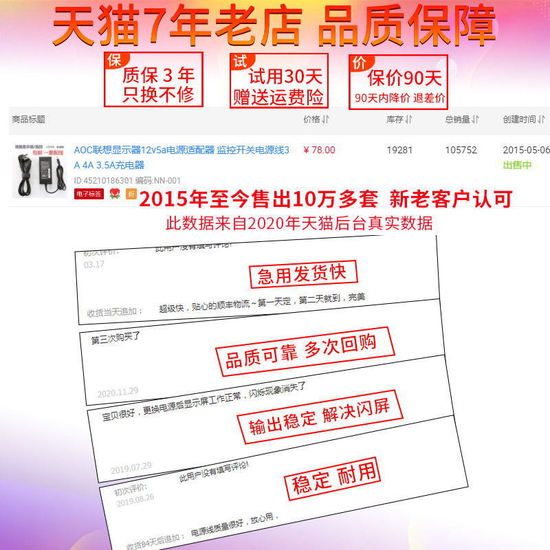 AOC Lenovo display 12v5a power adapter Monitoring switch Power cord 3A 4A 3 5A Charger