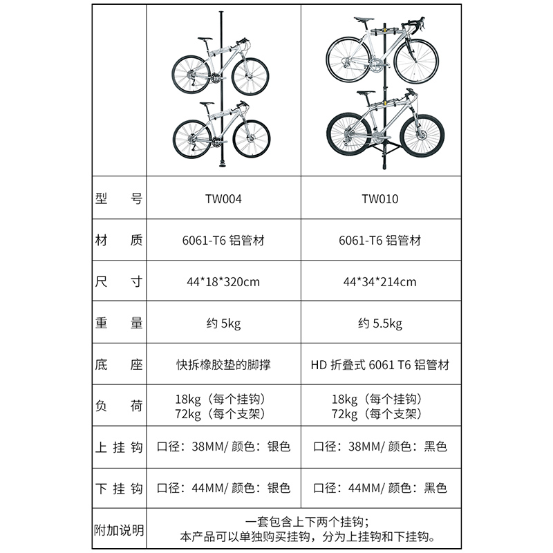 TW004 Display Stand, One Set of TW004 Upper Hooks, One TW004 Lower Hook, Single TW004-SP04 Extension Pole TW010 Display Stand, One Set of TW010 Upper Hooks, Single TW010 Lower Hooks, Single
