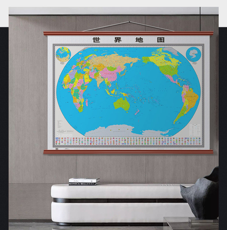 2019 new edition of the world map wall chart Width 1 8 m High 1 3 m Anti-red wood Boutique Wall Chart Small Four Full No Splicing Office Business Classroom Bookroom High-end Wall Chart