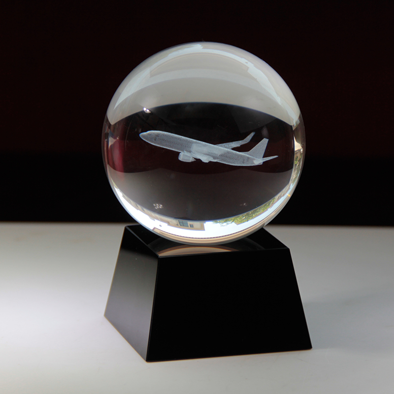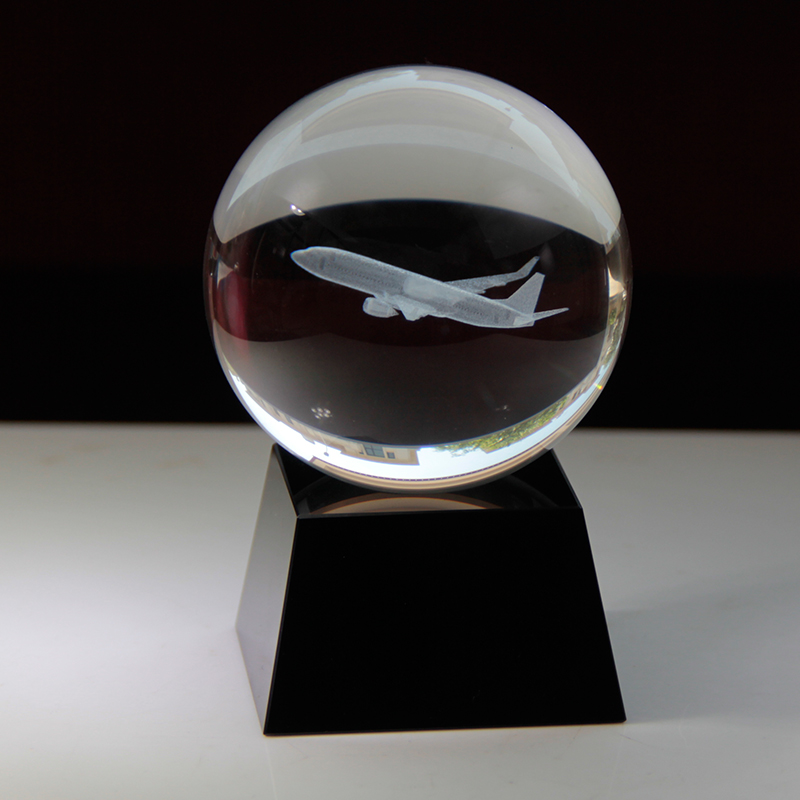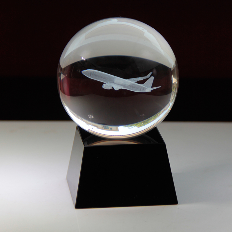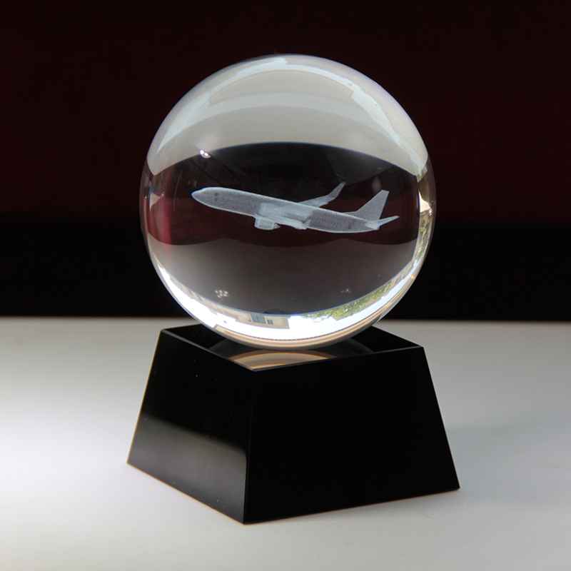 Crystal ball carved parts custom crystal 3D laser inner carving aircraft aeronautical souvenirs collection