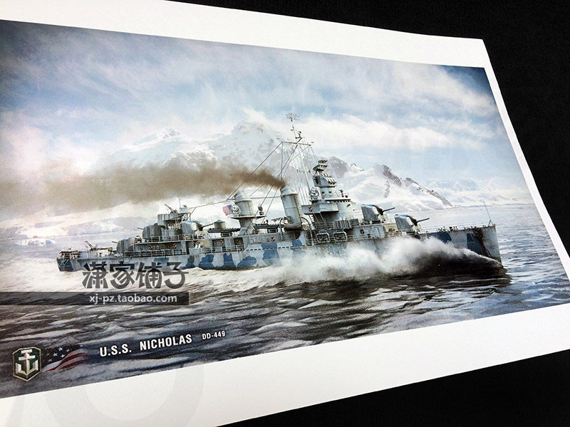 World War II US Fletcher-class destroyer Nicholas Pacific naval battle poster decorative painting