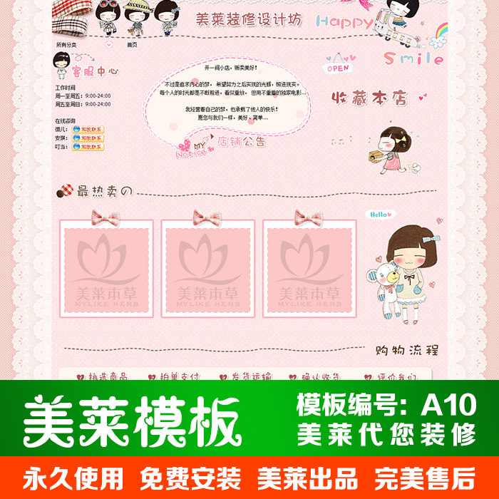 A10 Taobao shop decoration template Children's clothing cosmetics Mother and baby socks pink cute lazy board permanent free