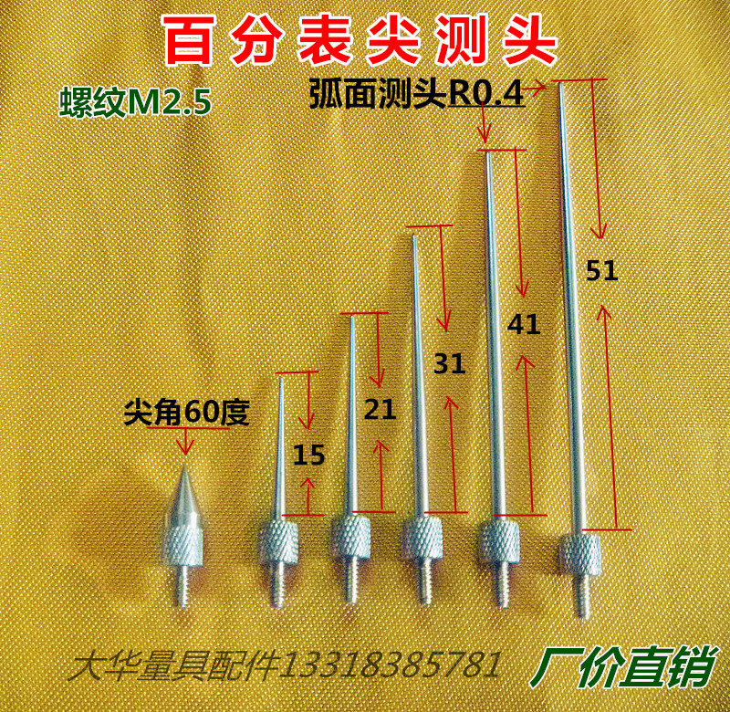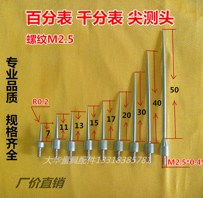 M2 500 micrometer gauge head conical measuring needle R arc surface lengthened indication table lower head probe head 7-50mm