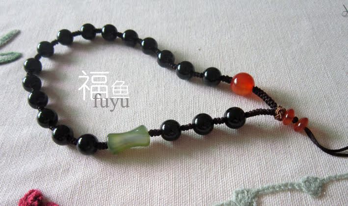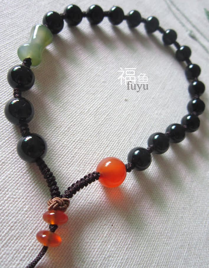 Natural agate handle piece hand-woven bead string with rope simple black agate green bamboo agate red agate with rope