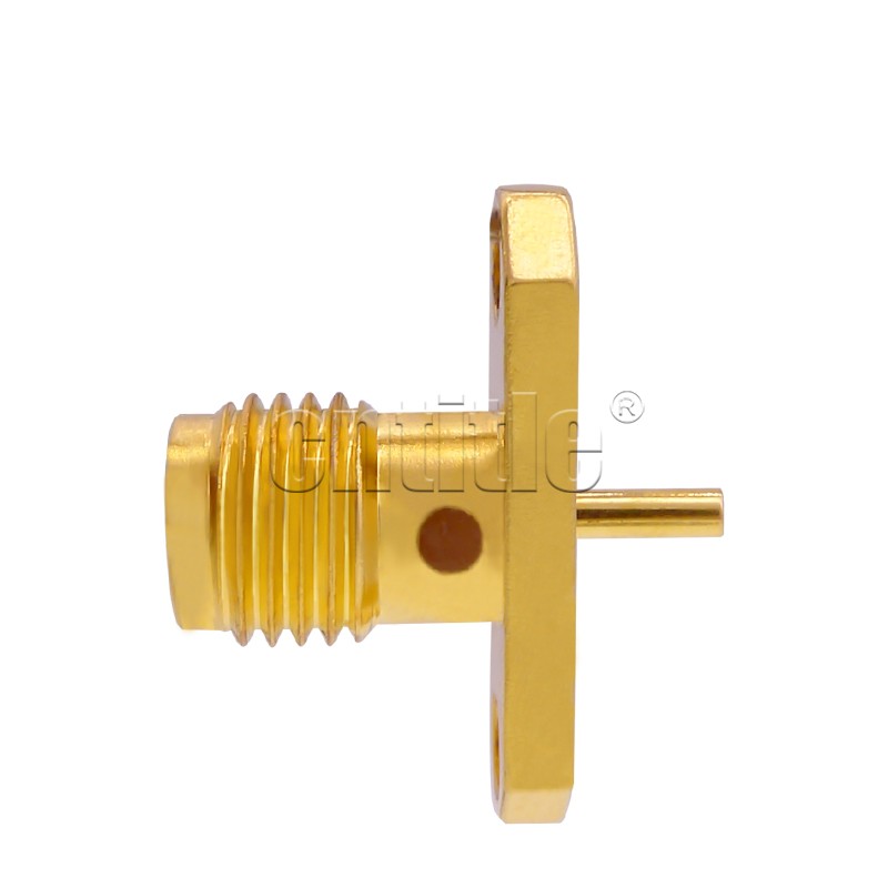 Gilded full copper SMA-KFD20 SMA two holes rhomboid female seat external thread inner hole panel housing PCB mounting