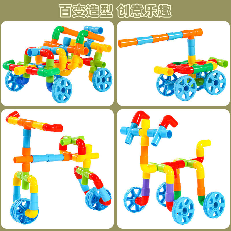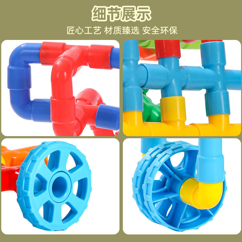 Chenfeng plug pipe racing car water pipe assembly building blocks Children Baby assembly Enlightenment early education educational toy
