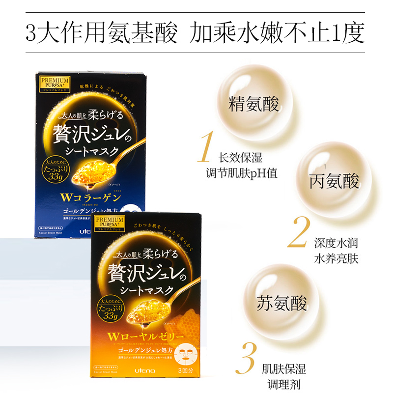 Clear Barn Japan Utena Yolan Bouric collagen cosmetic liquid gold jelly mask 3 pieces