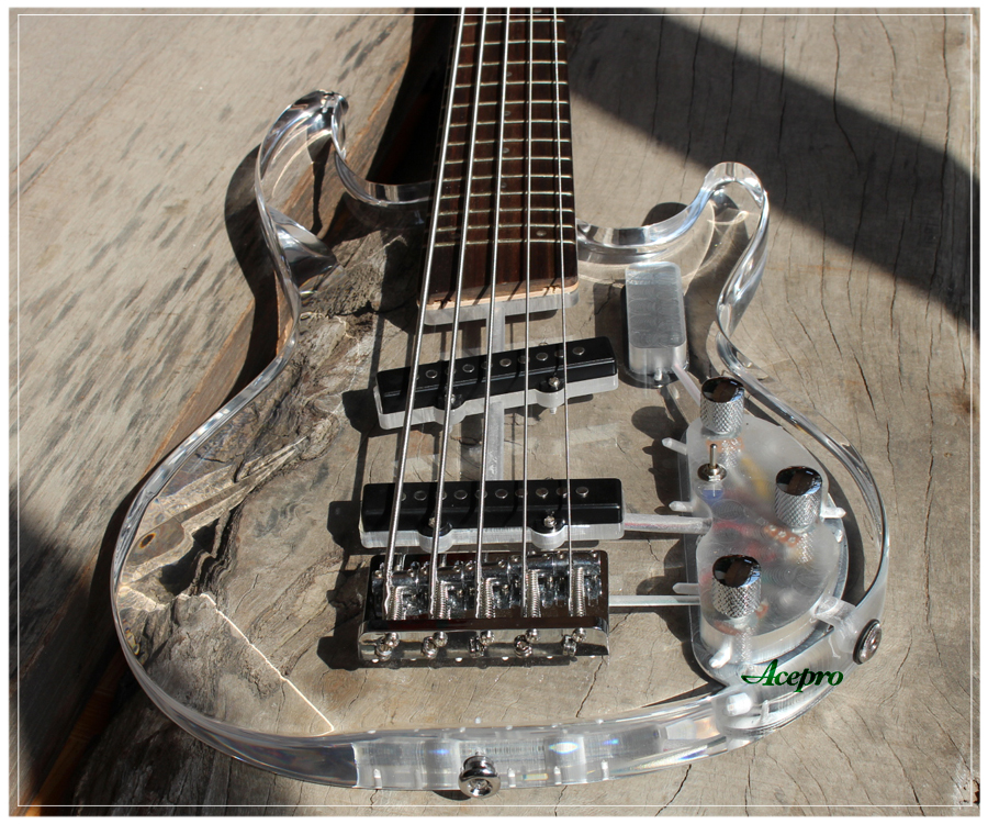 Acepro Crystal 5 Strings Electric Bass Division Transparent Crystal LED Lights Colorful bass24 Bass Bass Bass-Taobao