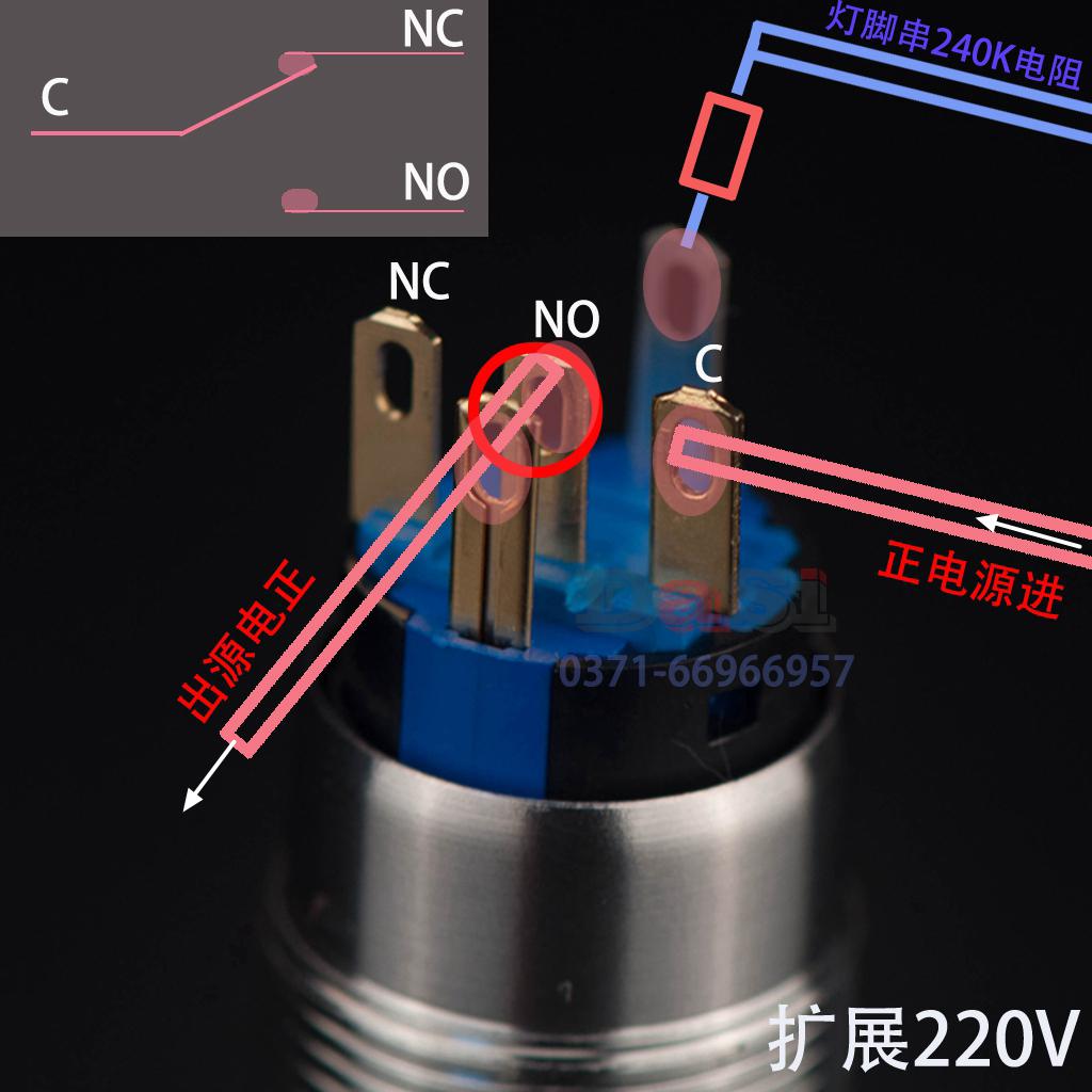 J19-371 B 12V 24V 220V stainless steel metal with lamp self-locking button waterproof grade IP67
