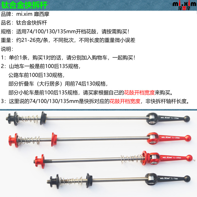 MI XIM ultra-light mountain and ferry road bike 74100130135m m titanium alloy Fast demolition rod axle