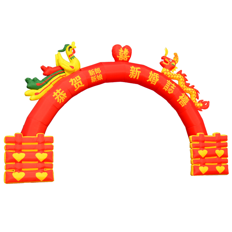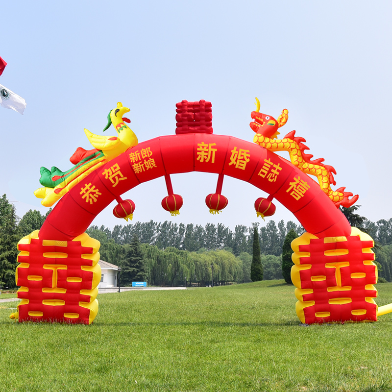 2022 Wedding Celebration Gas Mold New Inflatable Joy Bottom Dragon Crested Wedding Arch Celebration Colorful Iridescent Doors Large Inflatable Arches