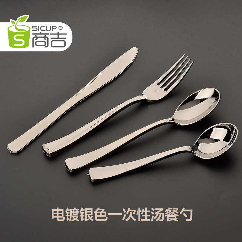 Shang Ji Plated Silver Soup Spoon Dining Spoon Disposable Dining Knife Fork Imitation Stainless Steel Plastic Knife Fork Spoon 50 Only