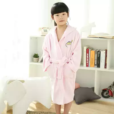 Full cotton hooded children's bathrobe cotton cut velvet autumn and winter boys and girls baby Bathing Bathing Bathing