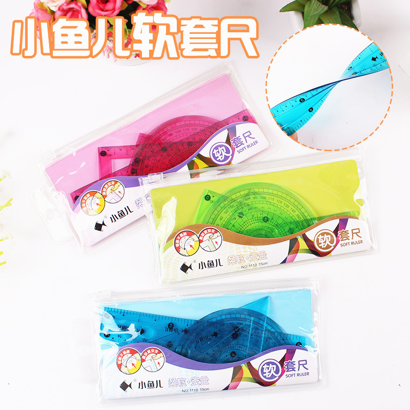 Young Child Safety Soft Plastic Small Fish Triangle Plate 4 Suit Protractor Straight Ruler Student Stationery Prize Batch