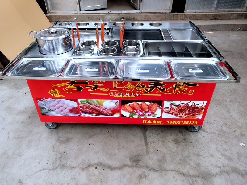 New six-function snack car Stir-fried Teppanyaki fried soup pot Malatang oden barbecue food car