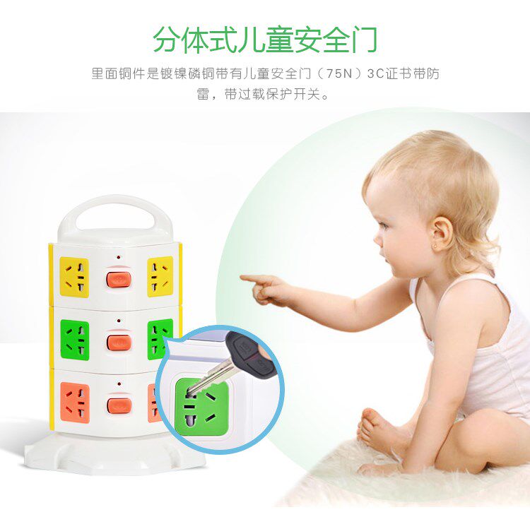 Multi-layer plug-in porous vertical socket tower plug-in plate with USB wiring board stereo four-sided disk