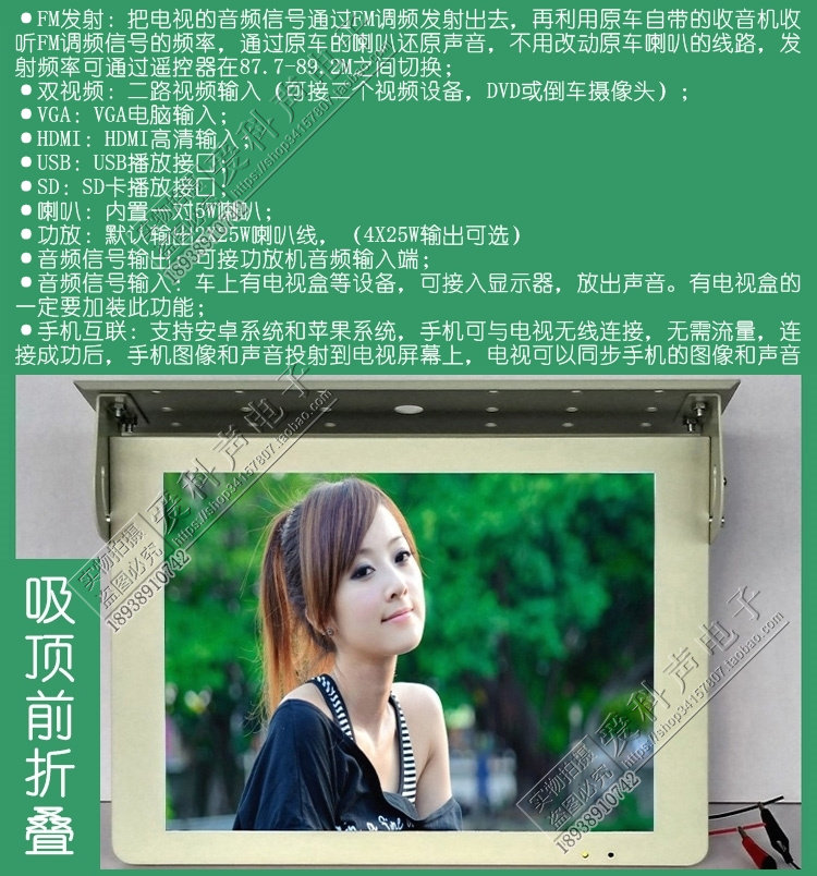 Bus bus suction 15 inch car display can be added USB SD card playback FM launch