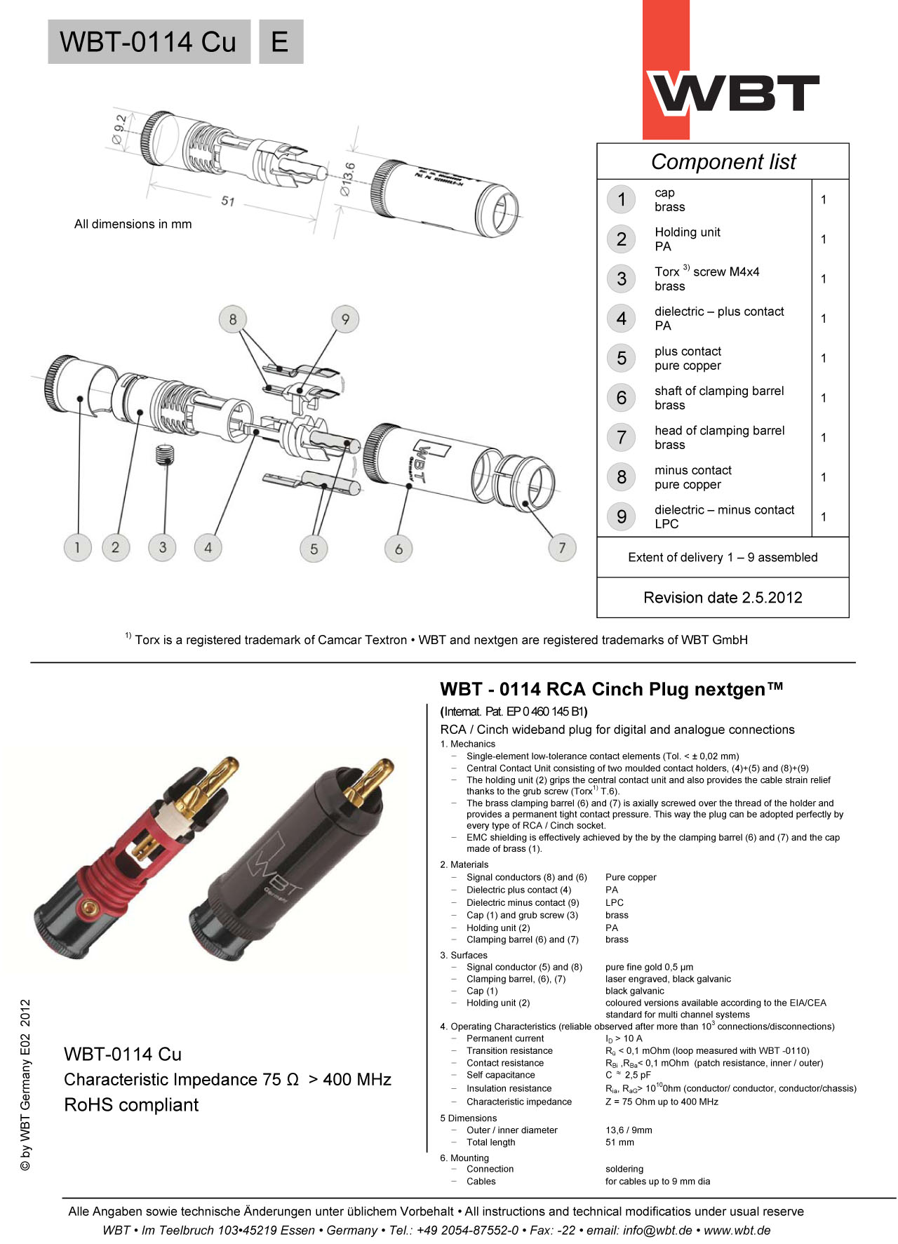 Original Dress German WBT 0114CU Single Point Transfer Hifi Fever RCA Signal Wire Plug