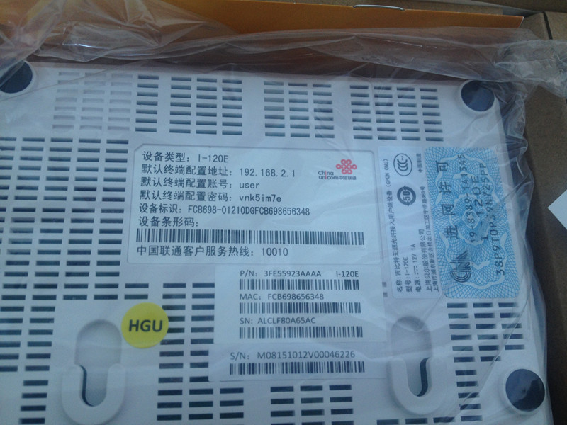 Bell Gigabit 120E 140W-UG Guangdong Inner Mongolia Heilongjiang Shandong Shaanxi Henan Unicom GPON Fiber Optic Cat