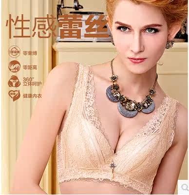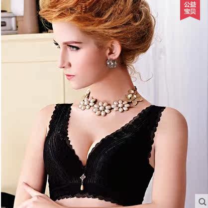 Bamboo charcoal lining deep V gathered bra thickened bamboo charcoal adjustable lace underwear Girl sexy 6-breasted vest style