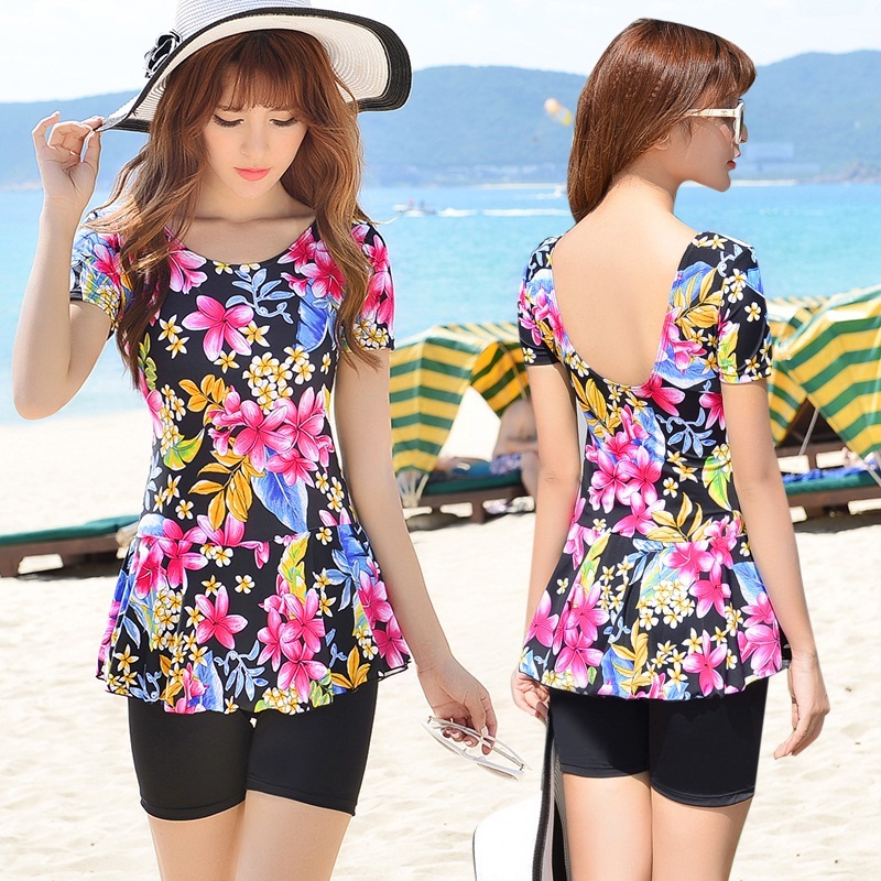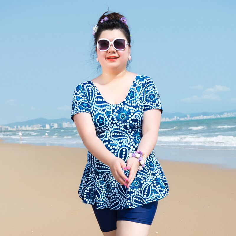 Middle-aged swimsuit lady conservative mom large-yard conjunction skirt bubble hot spring swimsuit covered obese mm