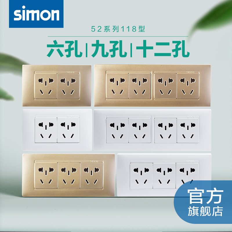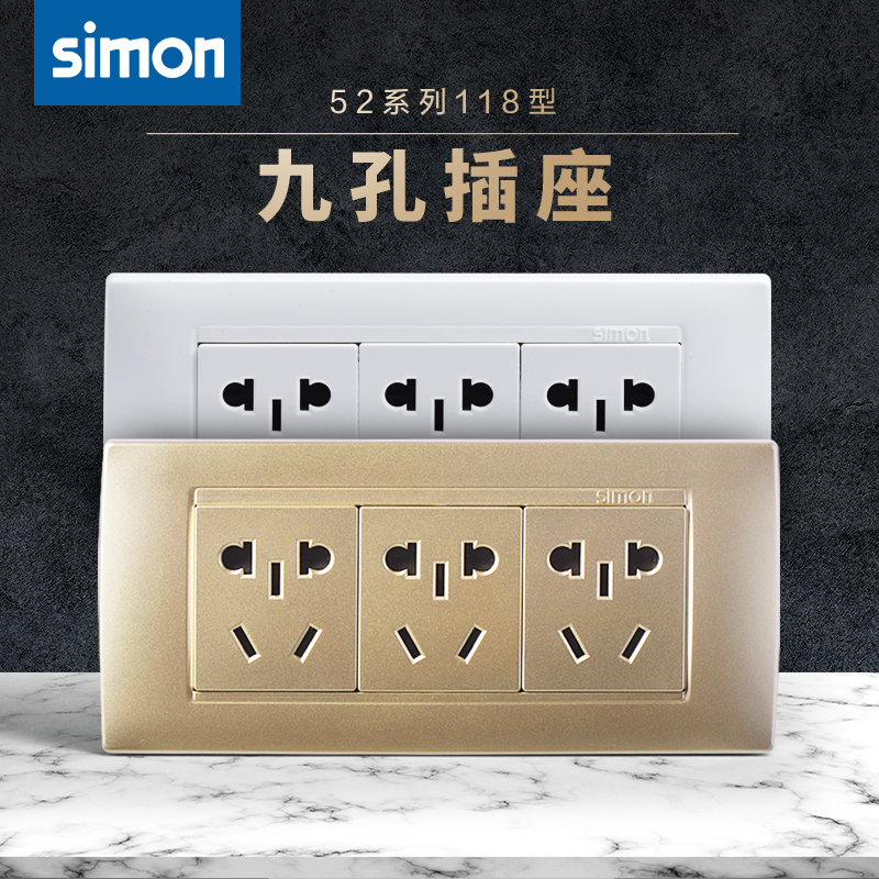 (Steel frame)Simon type 118 switch socket 52 series Champagne gold six-hole nine-hole twelve-hole wall socket